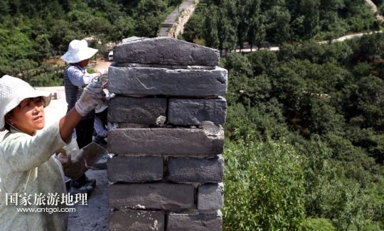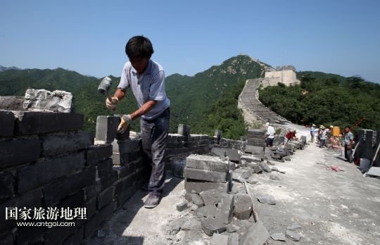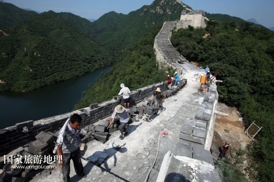 國(guó)家旅游地理 北京8月5日訊 8月4日下午,施工人員在北京懷柔西水峪古長(zhǎng)城進(jìn)行修繕。西水峪古長(zhǎng)城始建于明代,此次修繕部分總長(zhǎng)960米,在嚴(yán)格保障結(jié)構(gòu)安全以及原有風(fēng)貌的前提下進(jìn)行恢復(fù)性修繕,修繕后將達(dá)到對(duì)游客開(kāi)放攀登的標(biāo)準(zhǔn)。預(yù)計(jì)修繕工程將于今年10月底完成,屆時(shí)經(jīng)過(guò)專業(yè)部門驗(yàn)收后有望對(duì)外開(kāi)放。 /新華社發(fā)(卜向東 攝)
