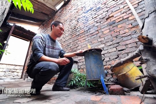 國家旅游地理 寧夏石嘴山9月6日訊 在寧夏回族自治區(qū)石嘴山市大武口區(qū)人民街道工人街社區(qū)的原洗煤廠老舊小區(qū)內(nèi),46歲的馬連生在院子里生火準備燒開水。他在這里已經(jīng)居住了14年(9月3日攝)。