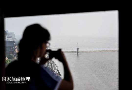 國家旅游地理 浙江嘉興9月7日訊 9月7日,一名游客在浙江海寧鹽官景區(qū)拍攝錢塘江大潮。當日是農(nóng)歷八月初三,眾多游客來到觀潮勝地浙江海寧觀看錢塘江大潮。錢塘江潮涌以其磅礴氣勢和壯觀景象聞名于世,潮頭最高時達3.7米,潮差可達8至9米,尤以農(nóng)歷初一至初六、十五至二十為大。第20屆中國國際錢江(海寧)觀潮節(jié)將于9月17日至9月26日舉行。/新華社記者韓傳號攝