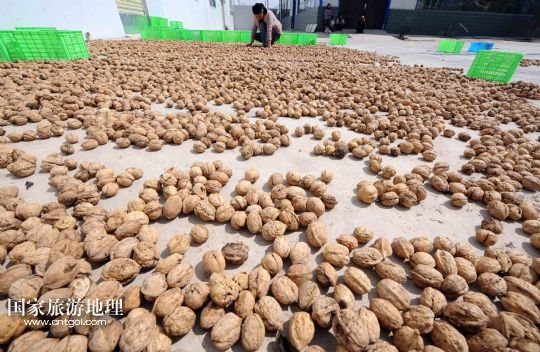 國(guó)家旅游地理 青海海東9月18日訊 青海省循化撒拉族自治縣積石鎮(zhèn)的農(nóng)民在晾曬薄皮核桃(9月17日攝)。金秋時(shí)節(jié),在青海省循化撒拉族自治縣核桃種植區(qū),果肉豐滿(mǎn)的薄皮核桃開(kāi)始上市。近年來(lái),循化縣利用黃河上游的氣候和土壤特點(diǎn),發(fā)展薄皮核桃特色產(chǎn)業(yè)。目前,循化縣核桃種植面積超過(guò)3萬(wàn)畝,小小核桃成為當(dāng)?shù)剞r(nóng)民致富的重要渠道。 /新華社記者 侯德強(qiáng) 攝