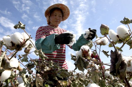 國家旅游地理 新疆哈密9月25日訊 9月24日,一名貴州籍拾花工在新疆哈密現(xiàn)代農(nóng)業(yè)園區(qū)棉區(qū)采摘棉花。連日來,新疆哈密20余萬畝棉花陸續(xù)進(jìn)入采摘期,來自貴州、青海、河南等全國各地的萬余名拾花工(采棉工人)到達(dá)哈密采摘新棉。 /新華社發(fā)(普拉提 攝)
