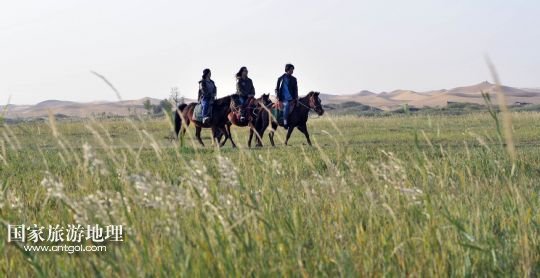 國家旅游地理 內(nèi)蒙古阿拉善9月29日訊 9月28日,游客在通湖草原景區(qū)騎馬。通湖草原景區(qū)位于內(nèi)蒙古和寧夏交界的騰格里沙漠腹地,景區(qū)匯集了沙漠、草原和湖泊,自然景觀獨特,吸引了眾多秋游的游客。 /新華社發(fā)(劉玉和 攝)