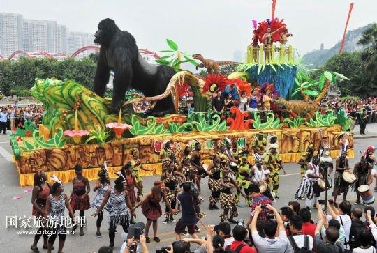 國家旅游地理 廣西柳州10月1日訊 9月30日,一輛巡游的花車經(jīng)過廣西柳州市駕鶴路。 當(dāng)日,2013中國柳州國際水上狂歡節(jié)以一場“狂歡大巡游”拉開帷幕。10輛造型各異的花車和國內(nèi)外各具特色的演藝團(tuán)體為市民和游客帶來一場歡樂盛宴。