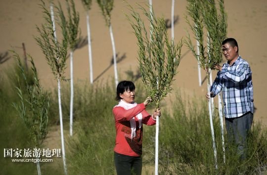 于是,憑著跑運(yùn)輸賺來的十幾萬元錢,顧蕓香和丈夫杜生龍承包了村里的5000畝沙地,開始治沙種樹。