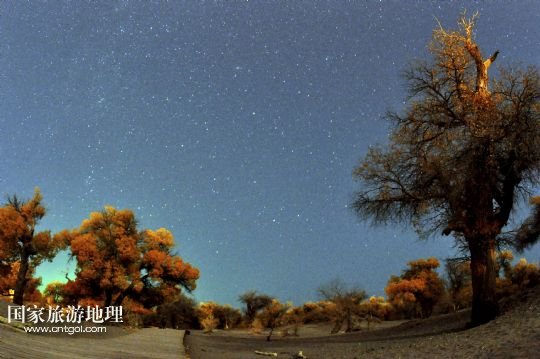 這是10月10日在內(nèi)蒙古阿拉善盟額濟(jì)納旗拍攝的星空下的胡楊林。