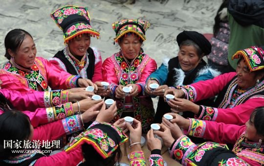 國(guó)家旅游地理 四川阿壩11月2日訊 11月2日,身著節(jié)日盛裝的四川省阿壩州汶川縣龍溪鄉(xiāng)村民們舉杯迎接羌?xì)v新年的到來(lái)。當(dāng)日,四川省阿壩州汶川縣龍溪鄉(xiāng)舉行傳統(tǒng)儀式迎接即將到來(lái)的羌?xì)v新年。今年的11月3日農(nóng)歷十月初一是羌?xì)v新年,這是羌族一年中最為隆重的“慶豐收、送祝福、祈平安”的節(jié)日,按民間習(xí)俗,過(guò)羌年時(shí)要還愿敬神,全寨人歡聚一堂,吃團(tuán)圓飯,共慶佳節(jié)。 /新華社發(fā)(何海洋 攝)
