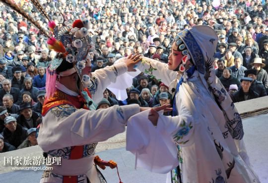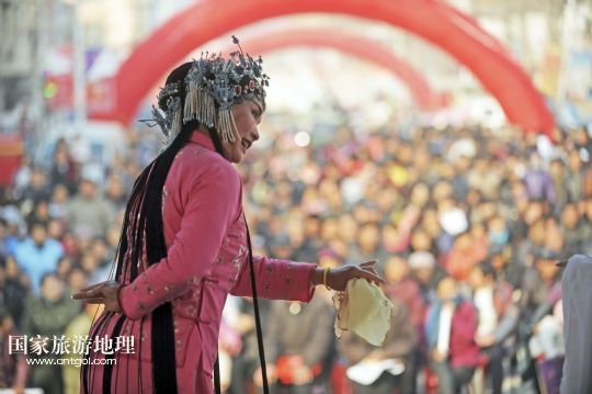 國(guó)家旅游地理 1月2日訊 2014年1月2日,在安徽省亳州市譙城區(qū)十河鎮(zhèn),演員在表演亳州非遺劇種“二夾弦”。當(dāng)日,安徽省亳州市譙城區(qū)2014年“三下鄉(xiāng)”活動(dòng)啟動(dòng),當(dāng)?shù)蒯t(yī)療、文化、科技部門的“三下鄉(xiāng)”服務(wù)隊(duì)到基層開展文化、衛(wèi)生、科技、法律下鄉(xiāng)活動(dòng),為基層群眾送上新年的問(wèn)候。 /新華社發(fā)(張延林 攝)