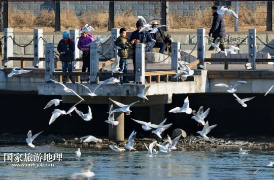 國(guó)家旅游地理 河北秦皇島1月13日訊 1月12日,一群海鷗在秦皇島市海港區(qū)新開河入海口處覓食。隨著氣溫不斷下降,在秦皇島沿海一線越冬的海鷗開始飛到市區(qū)內(nèi)的河道覓食,為冬日里的秦皇島市區(qū)增添了生機(jī)。 /新華社記者楊世堯攝