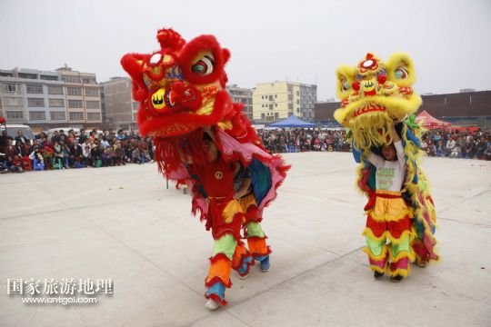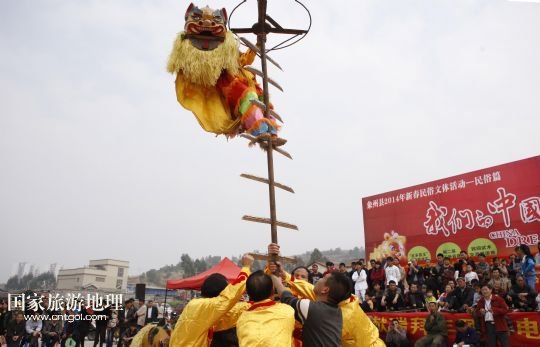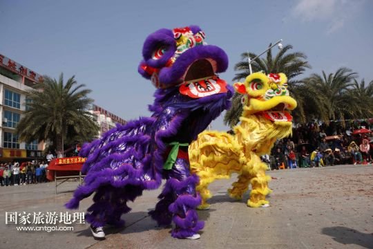 國家旅游地理 廣西來賓2月5日訊 2月4日,廣西象州縣的農(nóng)民舞獅隊(duì)在參加獅王爭霸賽。春節(jié)期間,廣西壯族自治區(qū)來賓市象州縣舉行獅王爭霸賽,來自該縣的32支農(nóng)民舞獅隊(duì)一展技藝、爭奪獅王,為當(dāng)?shù)厝罕姭I(xiàn)上一場(chǎng)精彩的民俗文化大餐。 /新華社發(fā)(龔堅(jiān) 攝)