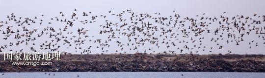 國家旅游地理 遼寧丹東5月2日訊 這是鳥群在空中飛翔(5月1日攝)。日前,遼寧省丹東市鴨綠江口濕地自然保護區(qū)迎來大批候鳥停留覓食。經(jīng)過中外鳥類專家在鴨綠江口濕地大約40公里范圍內(nèi)7個分點的同步調(diào)查發(fā)現(xiàn),共36種近14萬只鳥類云集于此,這些候鳥在鴨綠江口濕地經(jīng)過約1個月的休整、補充體能后,將繼續(xù)北上到俄羅斯西伯利亞和美國的阿拉斯加等地繁育后代。