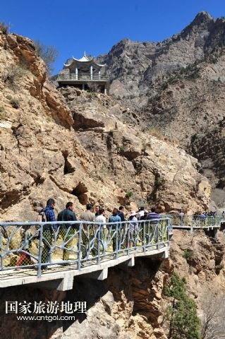 5月3日,游客在蘇峪口高山崖壁棧道上游覽觀光。