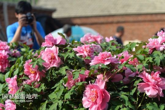 5月23日,游客在內(nèi)蒙古寧城縣長(zhǎng)皋村烏氏家族的庭院里拍攝的盛開(kāi)的牡丹花。