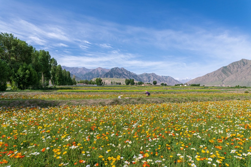 時值盛夏,地處祁連山北麓高海拔山區(qū)的甘肅省高臺縣新壩鎮(zhèn)紅沙河村種植的虞美人繽紛綻放,形成花海景觀。近年來,高臺縣新壩鎮(zhèn)將花卉蔬菜制種作為特色產(chǎn)業(yè)來抓,積極引導農(nóng)戶規(guī)?;⒓谢N植,成為當?shù)剞r(nóng)業(yè)增效、農(nóng)民增收的支柱產(chǎn)業(yè)之一。