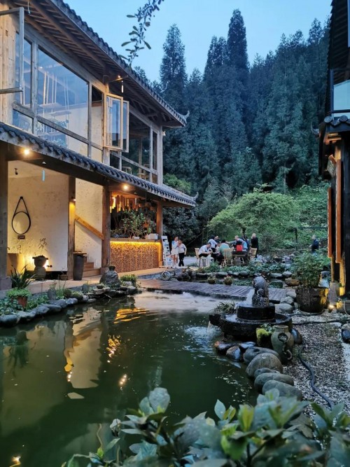 從成都主城區(qū)到眉山洪雅,自駕3個小時即可到達(dá),路況非常好。六七山居就在洪雅瓦屋山雅女湖旁,瓦屋山位于洪雅林場境內(nèi),被譽(yù)為全球最大的桌山,每年夏季,游客爭先到此避暑,每年冬季,游客蜂擁而至看雪。到了眉山洪雅,還可以順道去一下柳江古鎮(zhèn),去瓦屋山便會路過。在瓦屋山的層巒疊翠中,花溪河圍繞著具有獨特川南古民居風(fēng)格的吊腳樓,臨水而建,宛如一幅山水畫。